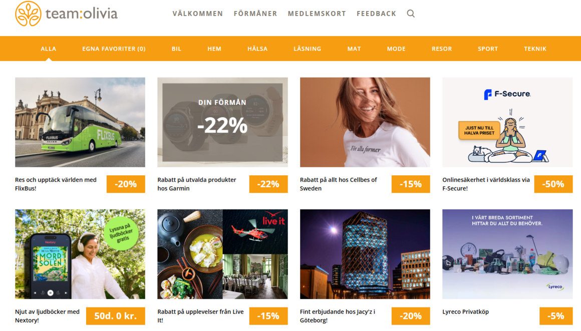 - Ca 60 förmåner finns tillgängliga för alla anställda